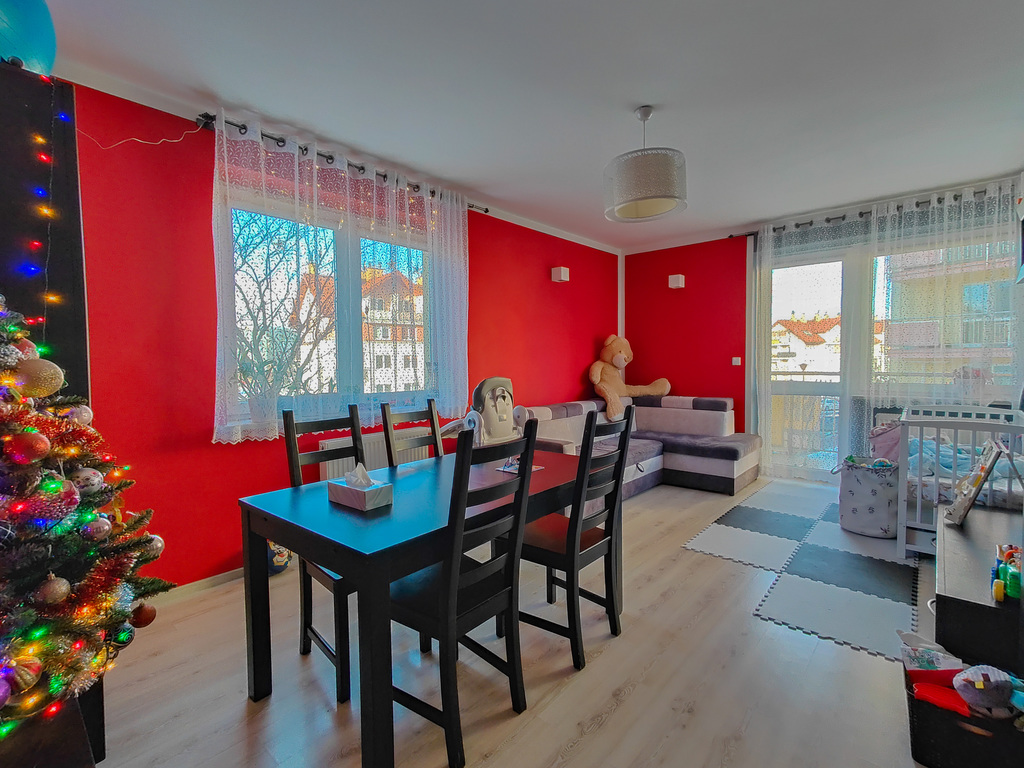 Mieszkanie w ofercie z wyposażeniem widocznym na zdjęciach.
